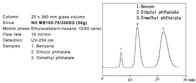 在使用NH MB 100-75/200SG填料之前最好做一下預(yù)實驗。以下是使用NH 薄層板和NH2 SPS 100-5SG做的預(yù)實驗。