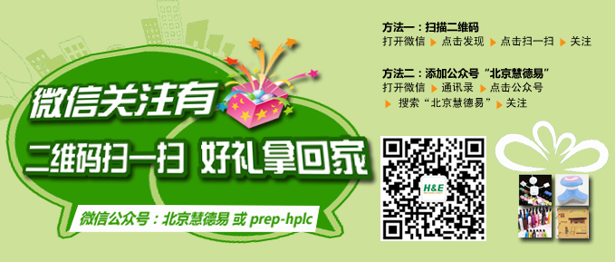 關(guān)注微信公眾號(hào)“北京慧德易”或“prep-hplc”,精美禮品送給您!