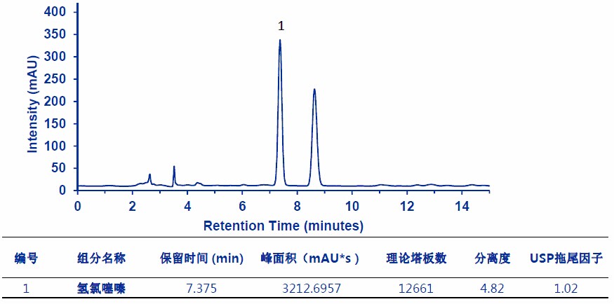 ????珍菊降壓片的修訂涉及氫氯噻嗪、蘆丁的含量測(cè)定,鹽酸可樂定的含量測(cè)定和蒙花苷的含量測(cè)定。默克應(yīng)用實(shí)驗(yàn)室根據(jù)2015版藥典對(duì)這些檢測(cè)項(xiàng)目的技術(shù)要求,推薦的解決方案如下。