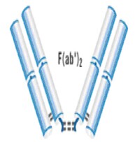 兩個(gè)Fab通過二硫鍵連接形成F(ab)2。分子量在~100kDa。2011年FDA批準(zhǔn)的Centruroides(Scorpion)Immune?F(ab)2是治療蝎毒的F(ab)2抗體片段。