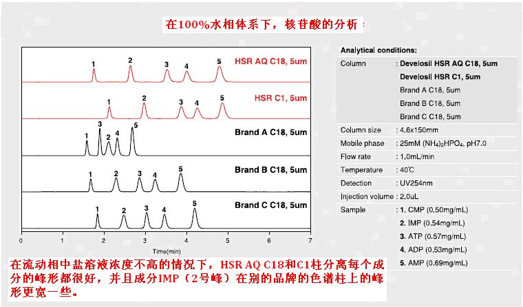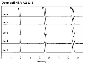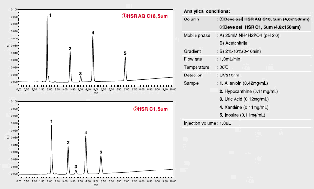 HILIC模式的柱子已經(jīng)有很多對(duì)極性化合物有良好保留的案例,但是,請(qǐng)嘗試一下Develosil的HSR系列色譜柱,你會(huì)發(fā)現(xiàn)這一系列柱子優(yōu)秀的的耐用性以及作為反相柱的便捷性。