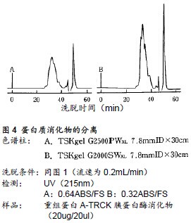 ??? 采用高性能尺寸排阻色譜法(GFC或SEC)進(jìn)行多肽分離,操作簡(jiǎn)便,不僅可用作檢測(cè)分子量的手段,還可作為純化多肽與蛋白質(zhì)分解產(chǎn)物如多肽片斷的方法之一。可與反相色譜法(RPC)及離子交換色譜法(IEC)聯(lián)用。同時(shí),在臨床上還通過(guò)把GFC進(jìn)行比較,來(lái)推測(cè)病程的進(jìn)展。