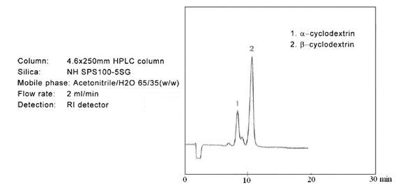糖類的分離通常用到的是乙腈/水做流動相。當乙腈的含量增加,保留因子k’增加。但是乙腈的含量需要仔細的控制,因為隨著乙腈含量的增加,樣品的溶解性會變差。