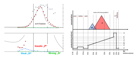 L.Aumann等通過(guò)Batch工藝,得出在胰島素精純時(shí)目標(biāo)產(chǎn)物與雜質(zhì)的分布特點(diǎn)。
