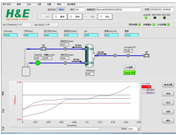 2)可設(shè)置進(jìn)料壓力、TMP及透過端UV報警值,超出范圍即停泵,防止目標(biāo)物損失,保證工藝可控性。