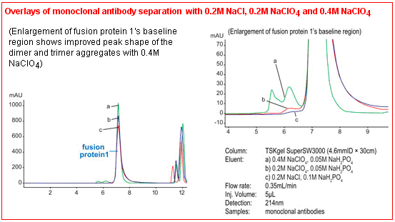 3. TSKgel SuperSW柱有內(nèi)徑為4μm的顆粒,能實(shí)現(xiàn)最高分辨率。窄至4.6mm內(nèi)徑的柱能在一定量的樣品質(zhì)量范圍內(nèi)提高高靈敏度。