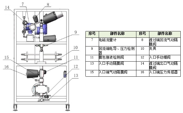 2) 配備流量、溫度等傳感器,可在線計(jì)算通量、濃縮因子;