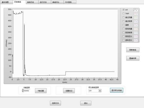 6) 可根據(jù)工藝要求在系統(tǒng)中靈活配置流量、溫度、電導(dǎo)率、pH、UV等在線檢測(cè)器,實(shí)時(shí)記錄運(yùn)行曲線;